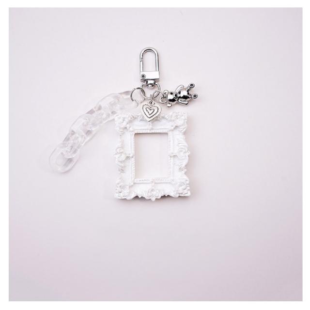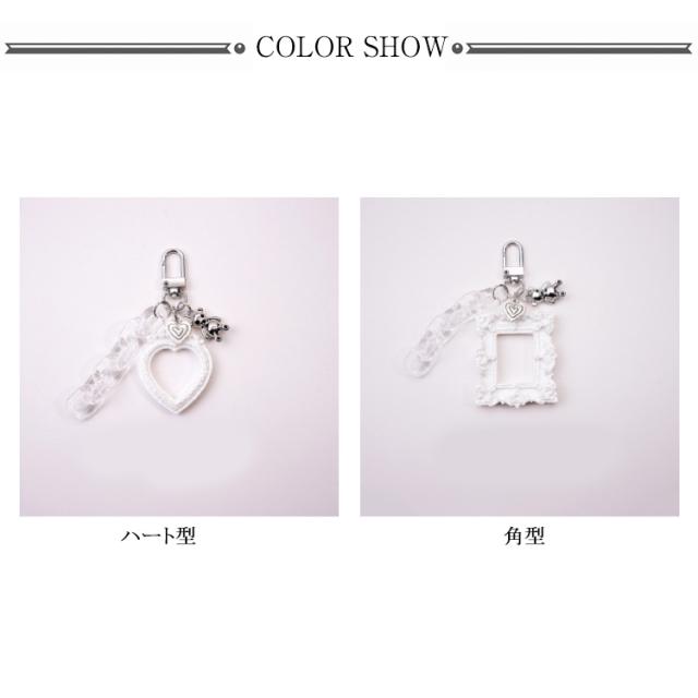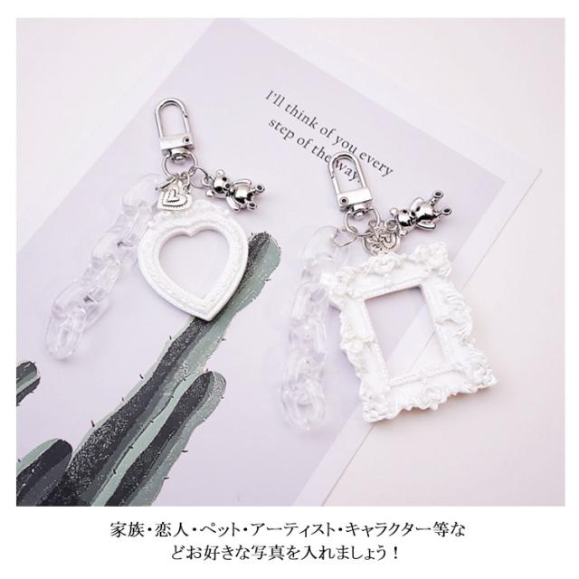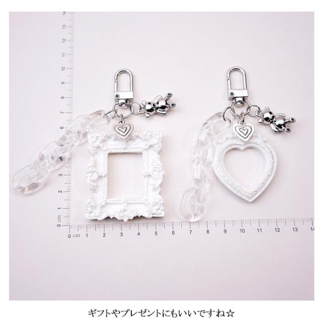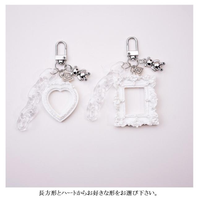 | 写真を入れられるフォトフレームキーホルダー 家族・恋人・ペット・アーティスト・キャラクター等などお好きな写真を入れましょう! 長方形とハートからお好きな形をお選び下さい。 ギフトやプレゼントにもいいですね☆ | |