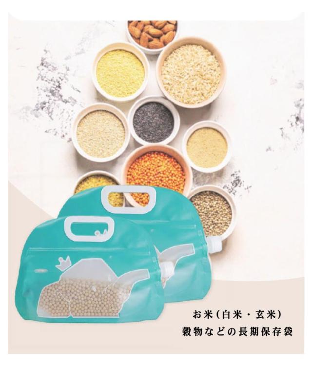 | 安心・安全に食品を保存できるチャック付き袋。 お米(白米・玄米)、穀物などの長期保存袋。 底部にはしっかりしたマチ付き!自立するから使いやすい! 水洗いできてお手入れ簡単!繰り返し使えるからエコ。 フリーザーバッグ、ストックバッグとして多用途にご利用いただけます。 酸化や虫害をシャットアウト!防災用としてもオススメです。 | |