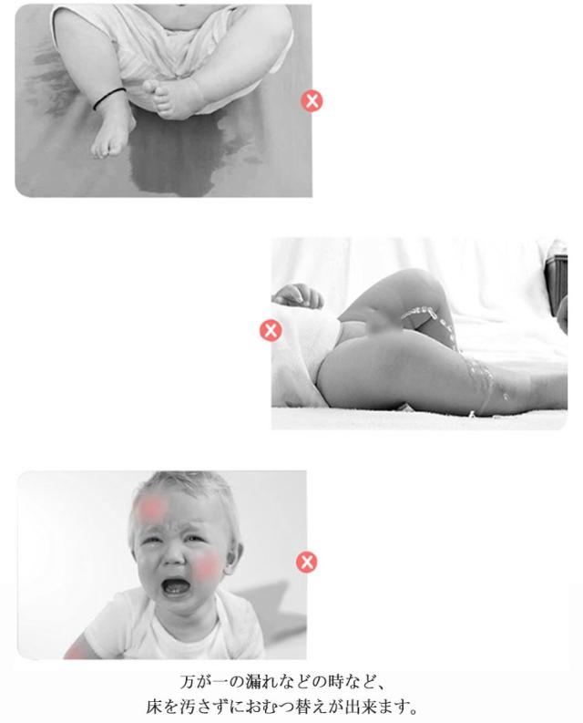 | 簡単持ち運びおむつ替えシート。 シーツやじゅうたんを濡らすことなく、しっかりと守ってくれる防水素材です。 万が一の漏れなどの時など、床を汚さずにおむつ替えが出来ます。 付属のフックにおもちゃをつけることができます◎おむつ替え時に赤ちゃんが動いてしまうのを防ぎます! さっと乾いて何度でも繰り返し使えるので、経済的にもオトクなうれしい機能性! 折りたたんでコンパクトに鞄などに収納できるので、お出かけ時のおむつ替えが衛生面的にもよくなり楽になります。 | |