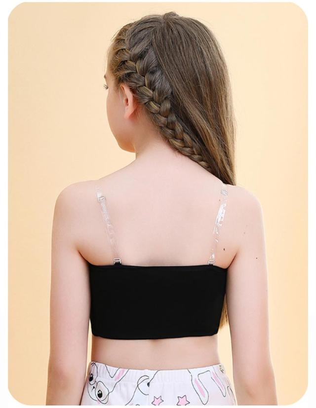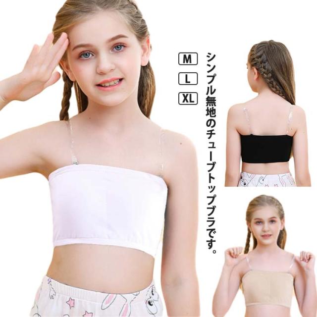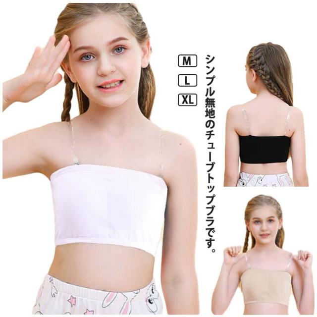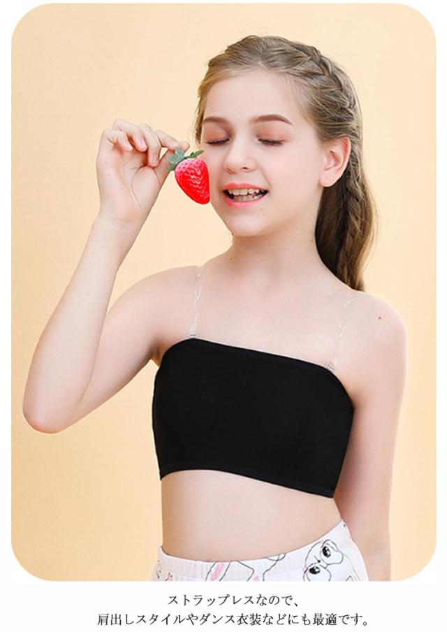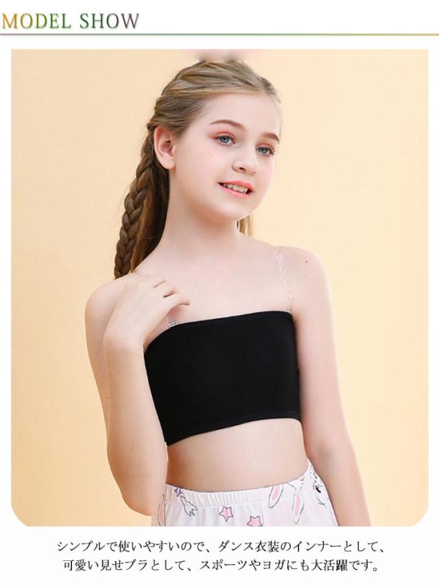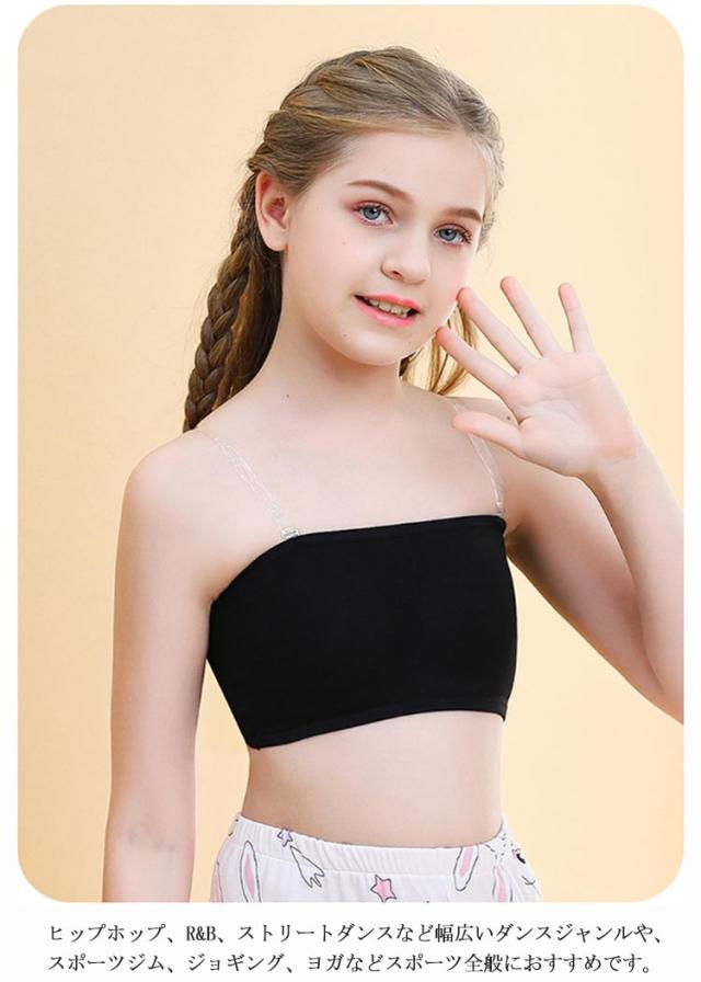 チューブトップ ダンス キッズ レディース スポーツブラ カップ付き 子供 ジュニア ダンス衣装 ブラ ノンワイヤー ベアトップ パッド ストラップ ベリーダンス インナー レッスン着 レッスンウェア ずれない トップス ヨガ 黒 透明ストラップ付 チューブトップ 夏