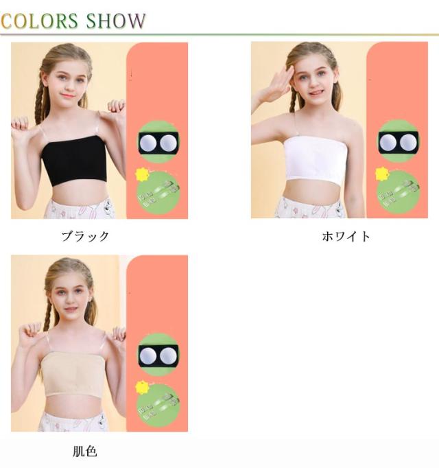 | シンプル無地のチューブトップブラです。伸縮性のあるノンストレスな着心地で体にフィット。子供向けパット入りチューブトップです。 透明ストラップのおまけ付き、ダンスやスポーツ時などずり落ちるのが心配な場合はストラップをつけて着用できます。 柔らかストレッチで動きやすく、デリケートな時期の女の子にぴったり。 取り外しパッド付き、小学生の初めてのスポーツブラから大人のブラトップまで。 伸縮性高いの柔らかい素材を使用して、締め付けず、肌や肩への負担がない、フィット感が抜群です。 シンプルで使いやすいので、ダンス衣装のインナーとして、可愛い見せブラとして、スポーツやヨガにも大活躍です。 ストラップレスなので、肩出しスタイルやダンス衣装などにも最適です。ヒップホップ、R&B、ストリートダンスなど幅広いダンスジャンルや、スポーツジム、ジョギング、ヨガなどスポーツ全般におすすめです。 | |