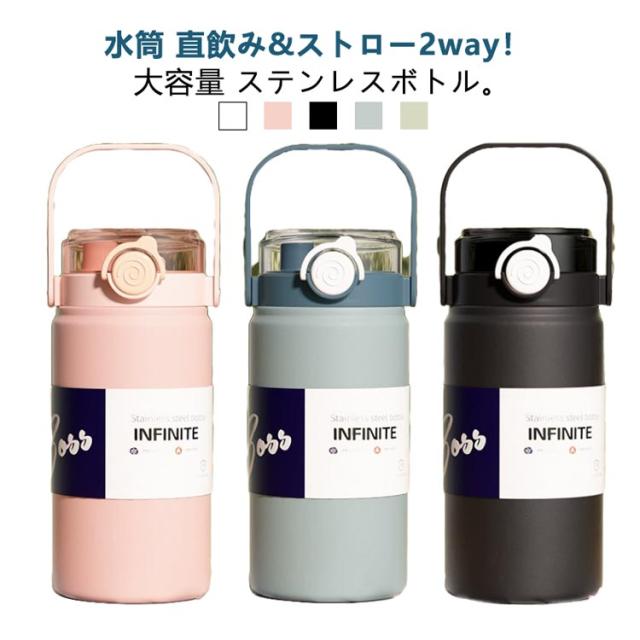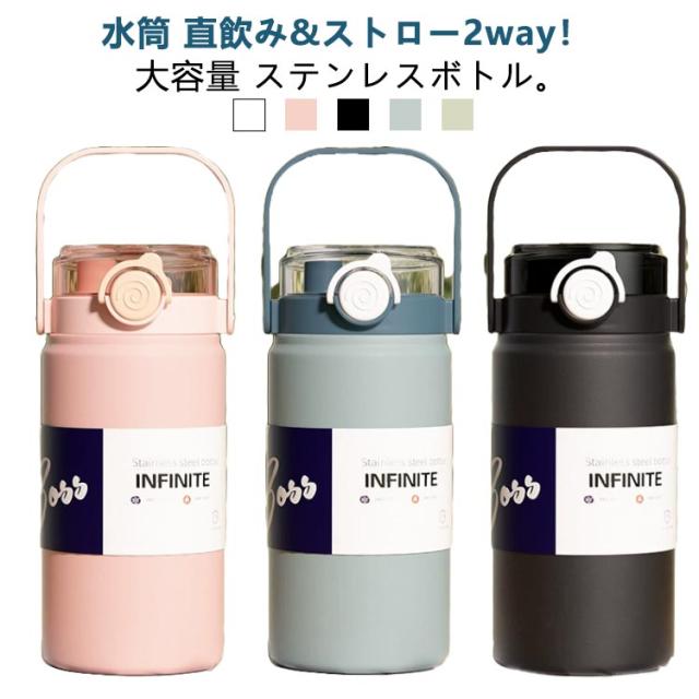 おしゃれ ストロー付き 大容量 1.2L 水筒 1L 携帯 保温 水筒 軽量 直飲み 2way アウトドア 真空断熱 ハンドル付き ステンレスボトル 洗いやすい 魔法瓶 スポーツジャグ スポーツ 保冷 キャンプ 保冷 ストロー付き 広口