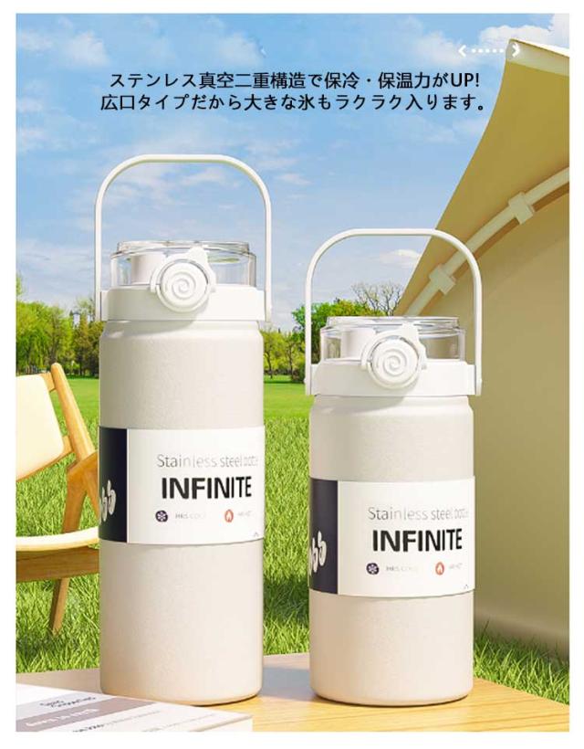 | 水筒 直飲み&ストロー2way! 大容量 ステンレスボトル。氷が長時間溶けないステンレス真空二重構造!キャンプやBBQでの氷の持ち運び、大容量の水筒など、屋外で冷たい飲み物を! 飲み物の温度を長時間キープ。 持ち運びに便利なハンドル付き。 細口で飲みやすい。 広口で氷も楽々入ります。 ステンレス真空二重構造で保冷・保温力がUP! 広口タイプだから大きな氷もラクラク入ります。 スポーツやサイクリング、ハイキング、キャンプ、 ランニング、旅行、登山、外での営業仕事や移動が多い方にもおすすめ。 | |