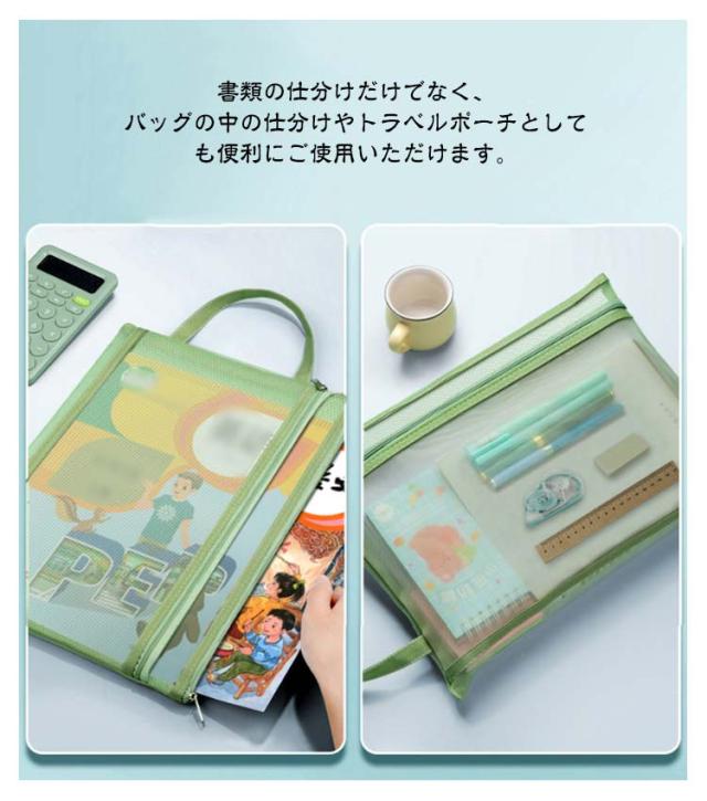 | 【A4サイズ対応】【書類ケース】【中身見やすいメッシュ素材】【5color 25×35cm 3個セット】 文具の収納や領収書・カード類の整理に、小物入れにと、多目的にご使用いただけます。 軽くて持ち歩きやすく、メッシュ素材なので中身が見えます。 口開きが広く、 物の出し入れがしやすくなっております。 ストラップが付いているので持ち運びが楽に行えます。 書類の仕分けだけでなく、バッグの中の仕分けやトラベルポーチとしても便利にご使用いただけます。 | |