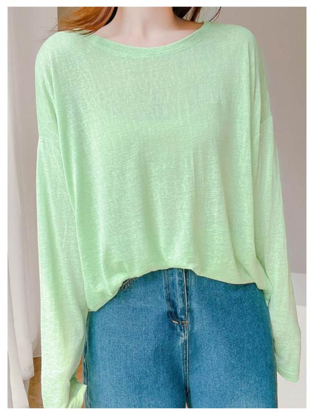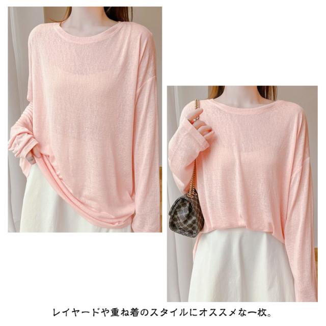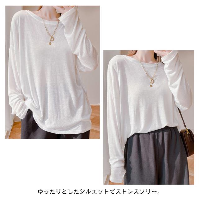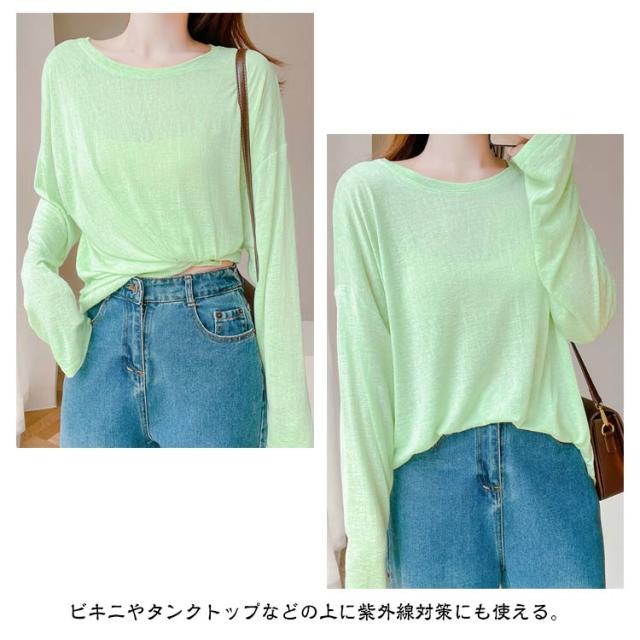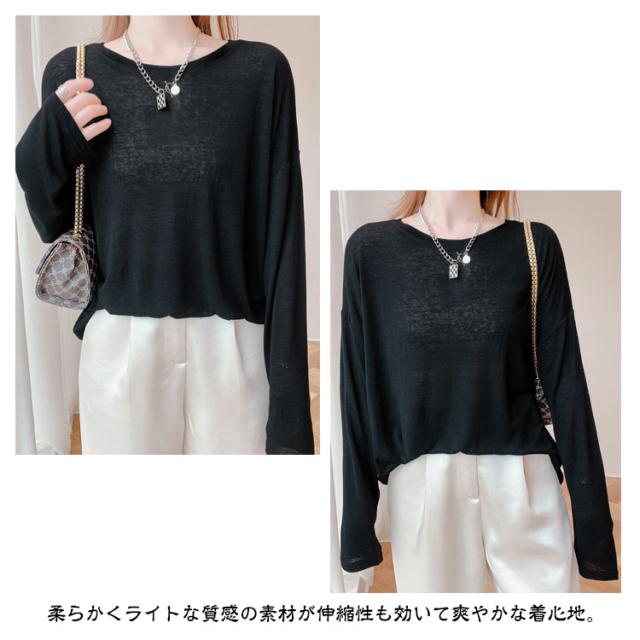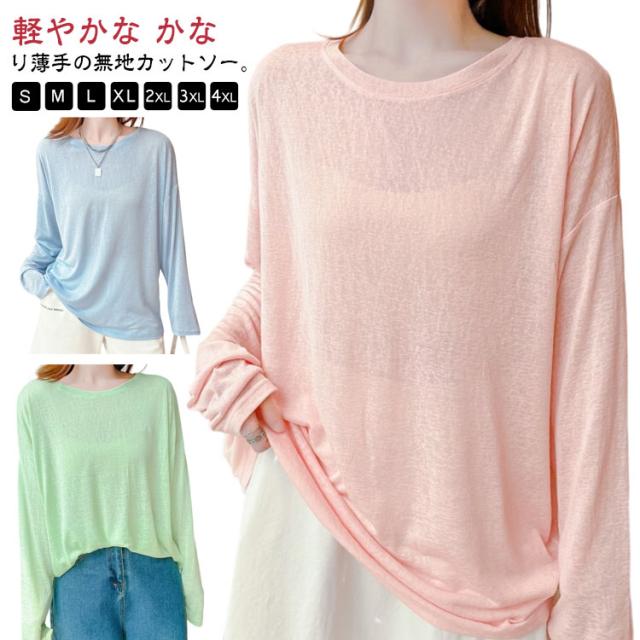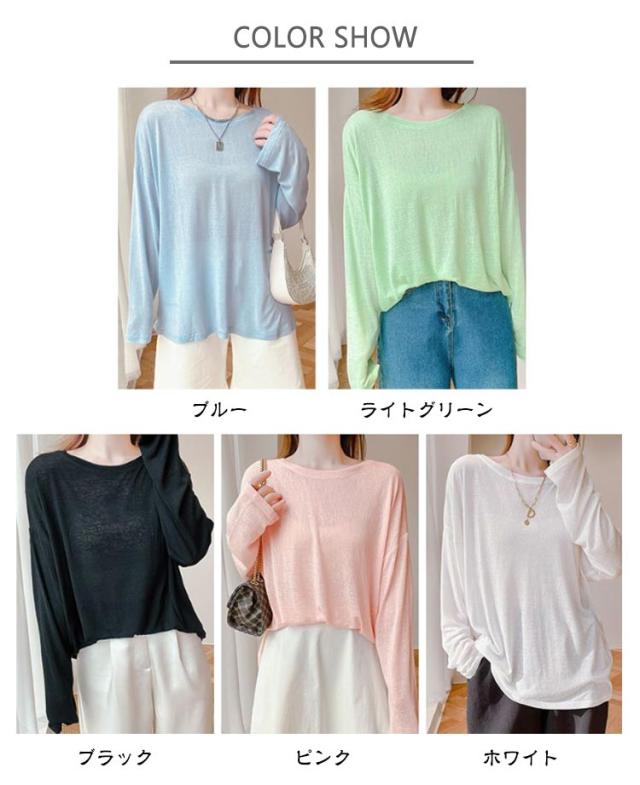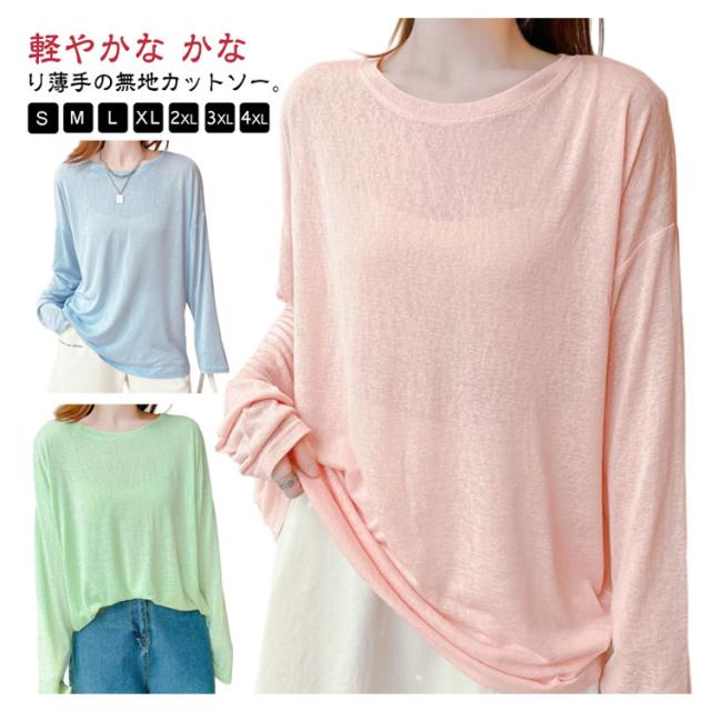 シアートップス クルーネック 薄手 長袖tシャツ シアートップス 夏 冷感 トップス 接触冷感 涼感 春 重ね着 インナー レディース 日よけ 無地カットソー 紫外線対策 カットソー 涼しい 大きいサイズ 送料無料