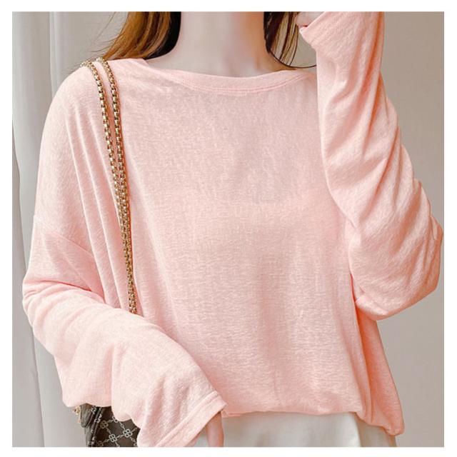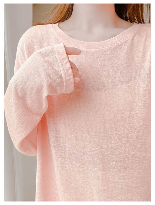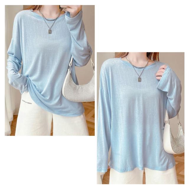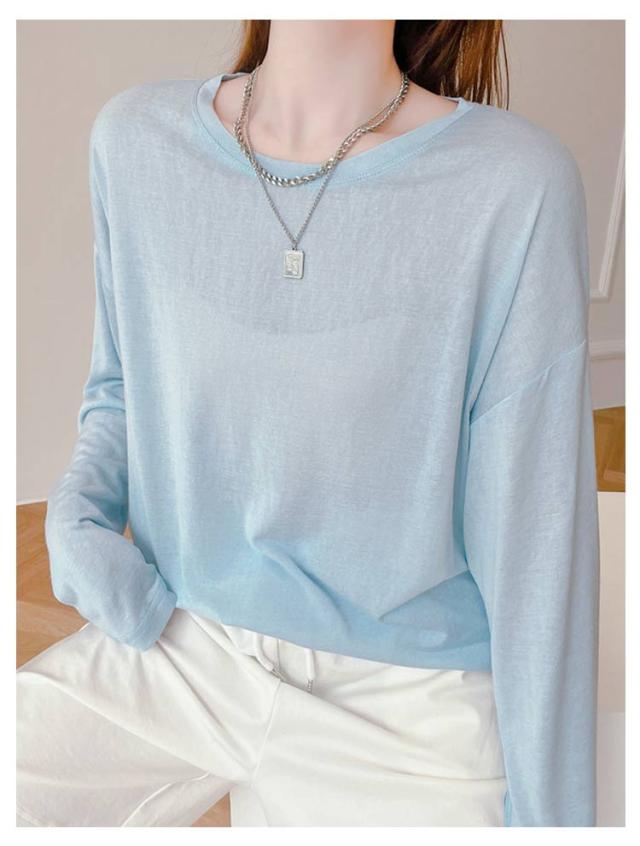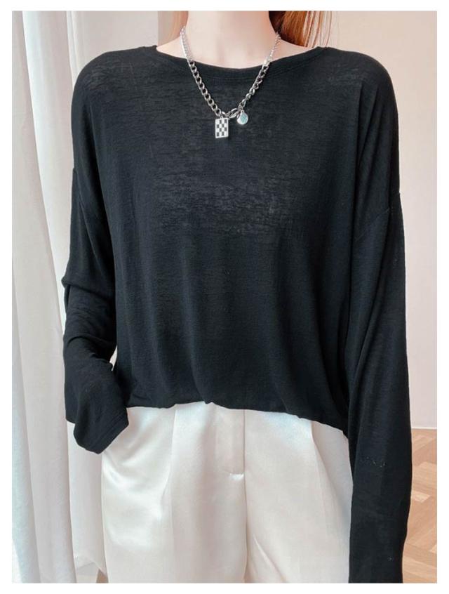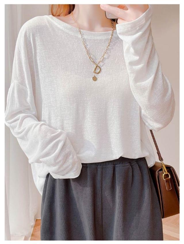 シアートップス クルーネック 薄手 長袖tシャツ シアートップス 夏 冷感 トップス 接触冷感 涼感 春 重ね着 インナー レディース 日よけ 無地カットソー 紫外線対策 カットソー 涼しい 大きいサイズ 送料無料