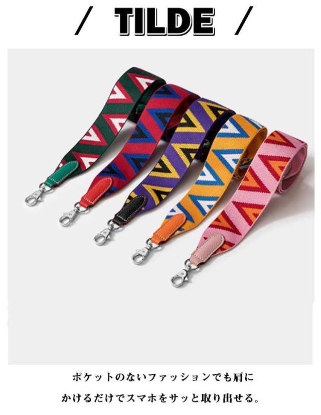 | 幾何学柄配色デザインのマルチストラップ。【太さ50mm】【長さ70cm/80cm/90cm/100cm/110cmが選べる】 ポケットのないファッションでも肩にかけるだけでスマホをサッと取り出せる。 両手がふさがる旅行先でも重宝します。 両先端はフック式で簡単に付け外しOK! 幅広ベルトなので長時間つけても痛くないのでお出かけにおすすめです。 スマホだけでなくバッグなどマルチウェイで使えます。 ケースとスマホの間に挟むだけなので全機種使えます。 | |