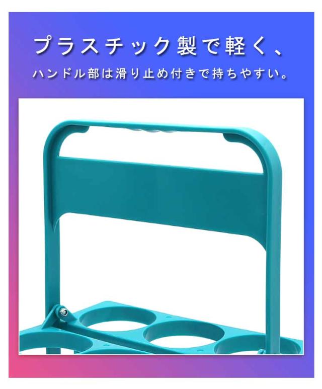 | 飲料のまとめ買いやイベント時の運搬に大活躍するドリンクホルダーです。 ボトルが6本収納可能!チームのスムーズな水分補給をサポート。 プラスチック製で軽く、ハンドル部は滑り止め付きで持ちやすい。 折りたたみ式のためコンパクトに収納可能。 アウトドアやピクニック、バーベキューはもちろん、家族や友達とのたくさんのテイクアウトにも便利に使えます。 | |