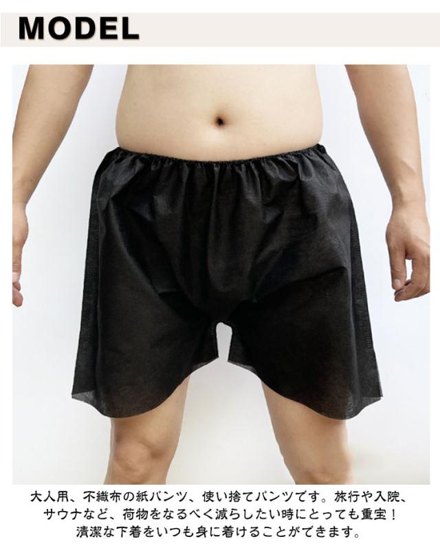 ペーパーパンツ 使い捨てパンツ 短パン トランクス 送料無料 マッサージ 使い捨て 下着 衛生 使い捨てパンツ 災害 旅行 サロン 簡易下着 ペーパートランクス 介護 男女兼用 サウナ エステ 業務用 紙パンツ 紙製 入院 旅行 フリーサイズ 黒 白