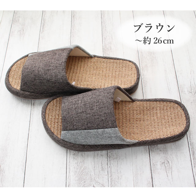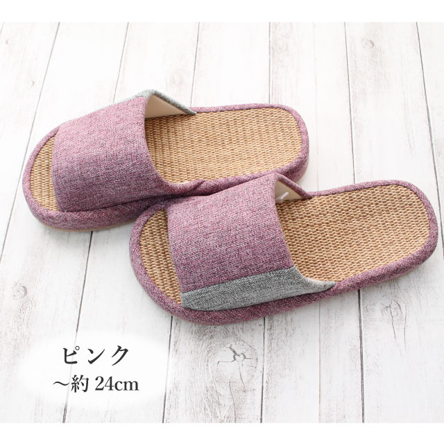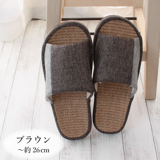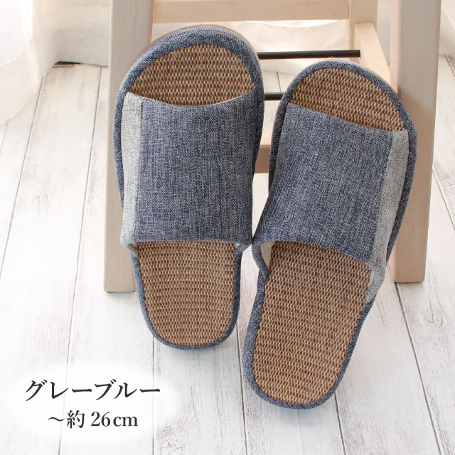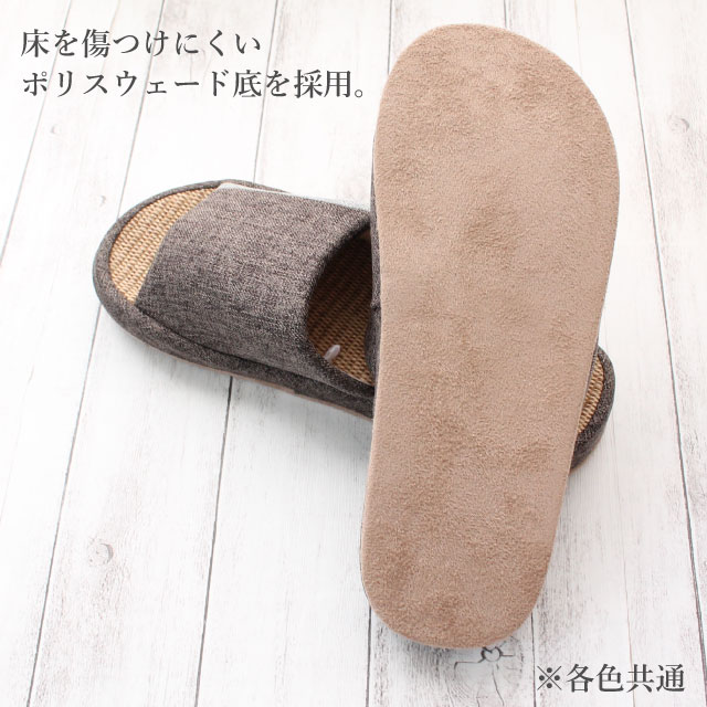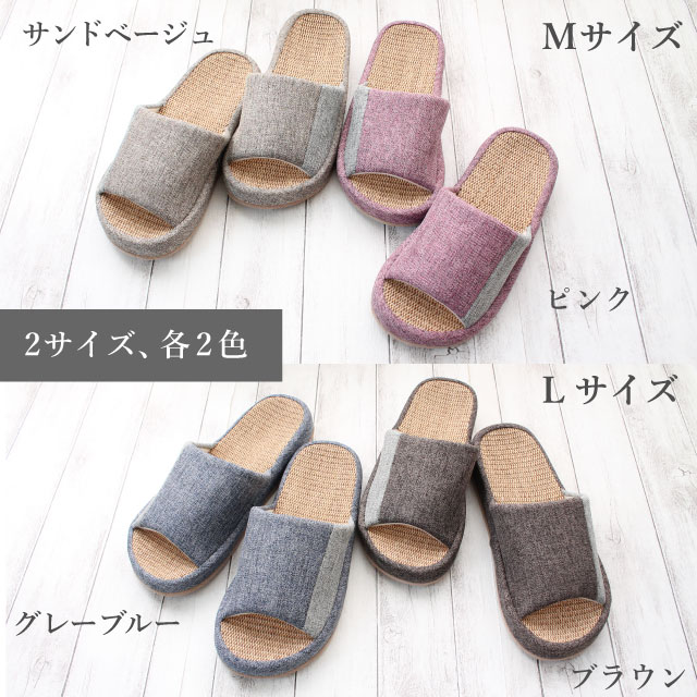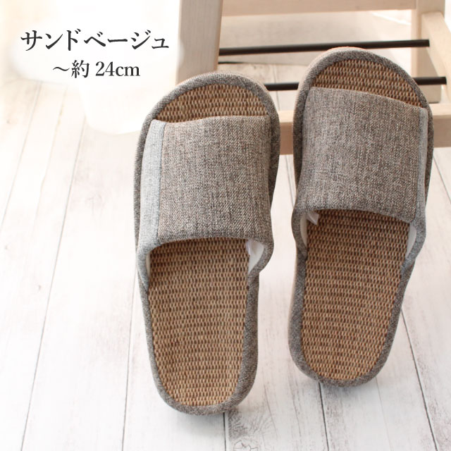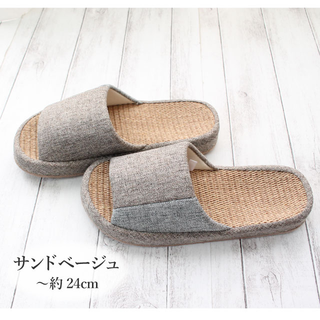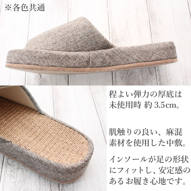 スリッパ 麻混 インソール コンフォート 春 夏 来客用 前あき 室内 ルームシューズ 1足