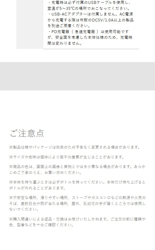 - 充電式、口が大きく補充しやすい、背が低く化粧台の扉に干渉しないことが条件。文句なし。見た目もとてもおしゃれです。