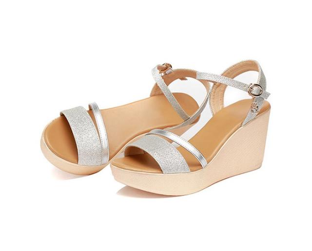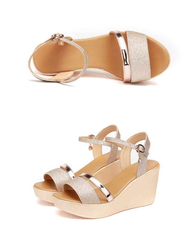ウェッジソール サンダル キラキラ 厚底 ウエッジソール 厚底サンダル レディース かかとあり ヒールサンダル アンクルストラップ ストライプサンダル 着心地よい おしゃれ 美脚 大人 可愛い 靴 女性 さんだる ブラック シルバー ゴールド レッド 21.0-26.5