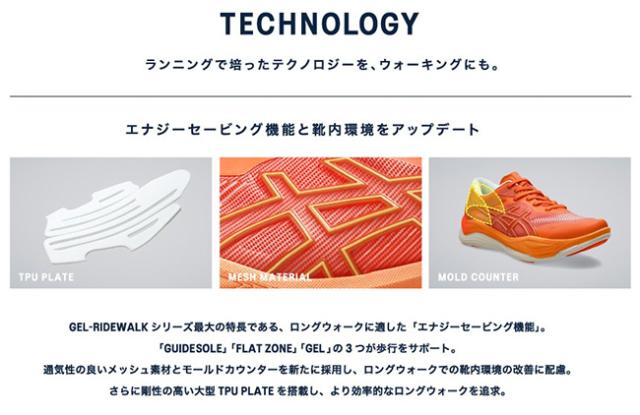 エネルギー消費を抑えて長く歩き続ける、ウォーキングの歩行動作に適した「エナジーセービング」機能を搭載した、ロングウォーク対応シューズのトップモデル