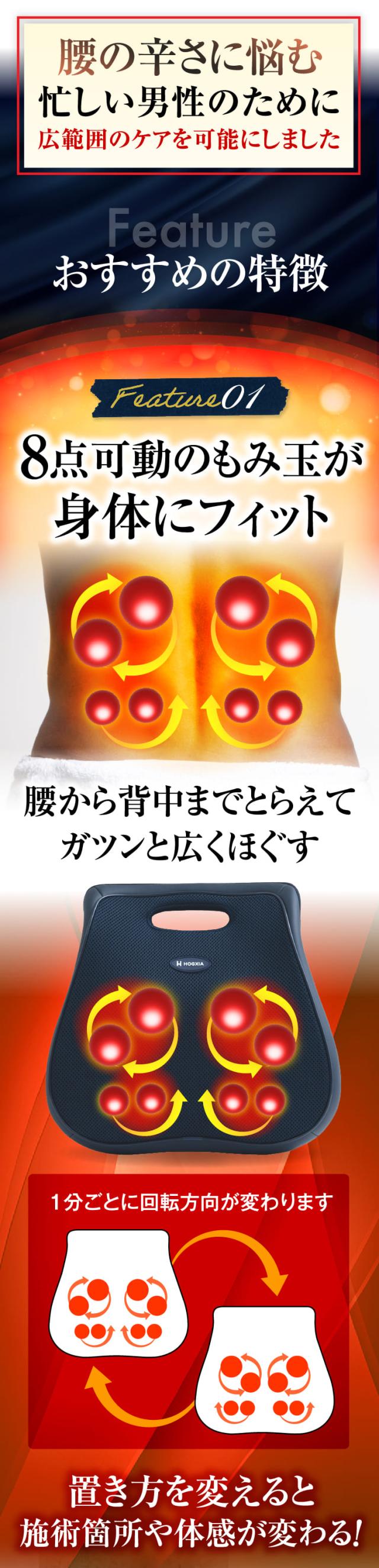 大小合計8つのもみ玉が回転しながら程よい刺激を与え、