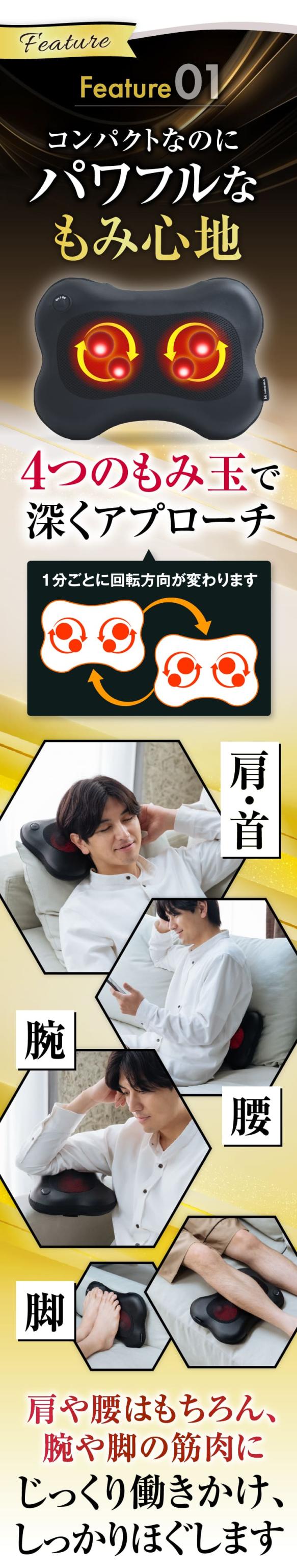 【医療機器認証】 HOGXIA 小型マッサージ機 肩こり マッサージ機 プレゼント 電動マッサージ機 首肩マッサージ機 / マッサージ クッション HGX-129M ブラック