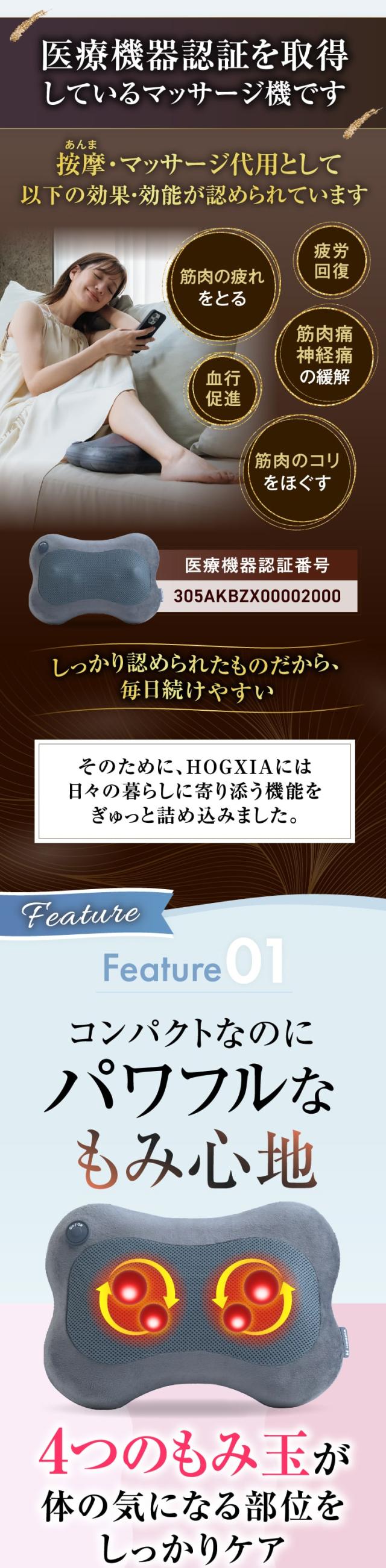【医療機器認証】 HOGXIA 小型マッサージ機 肩こり マッサージ機 プレゼント 電動マッサージ機 首肩マッサージ機 / マッサージ クッション HGX-129M グレー
