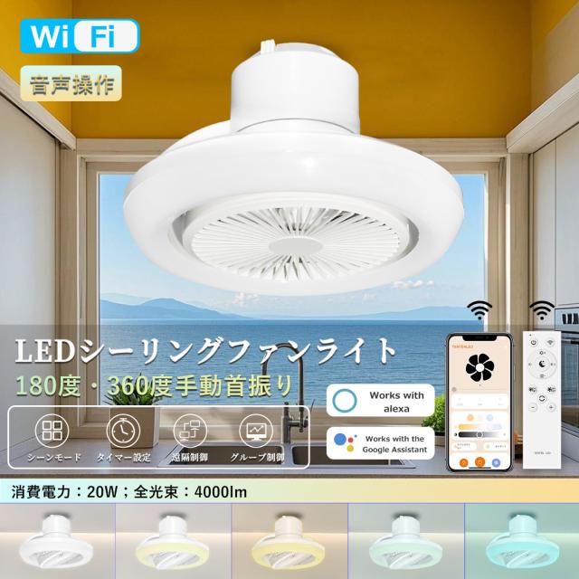 【限定ポイント7倍】シーリングファンライト led ファン付き照明 シーリングファン 首振り 6-8畳 扇風機 サーキュレーター 照明器具シーリングライト 調光調色 常夜灯 タイマー機能 空気循環 工事不要 静音 軽量 薄型 暑さ対策 リモコン/スマホ/スピーカー対応 玄関 トイレ
