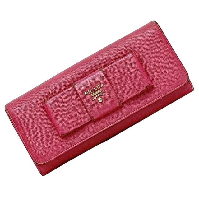プラダ 二つ折り 長財布 ec-23735 ピンク 1M1132 財布 サフィアーノ レザー 中古 12 PRADA ホック ロング ウォレット リボン 定番 人気 女性 レディース 可愛い お洒落 革 小物 シンプル エレガント ワンポイント ブランド財布 高級感 ブランド 本物 鑑定済み
