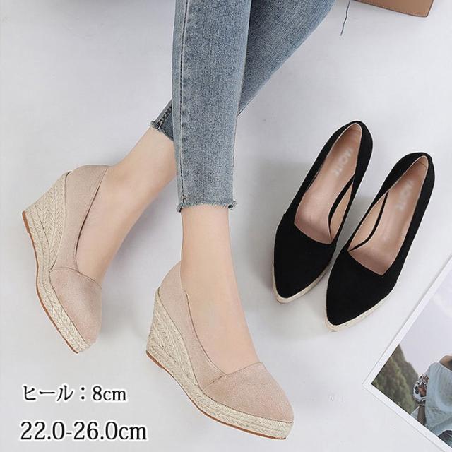 パンプス ウェッジソール 厚底 痛くない 柔らかい ストレスフリー ヒール8cm スエード 大きいサイズ 長時間 疲れない 入学式 卒業式 歩きやすい 防水 エナメル ミドルヒール 通勤 通学 仕事 おしゃれ レディース靴 大きいサイズ ブラック ベージュ 22.0-26.0