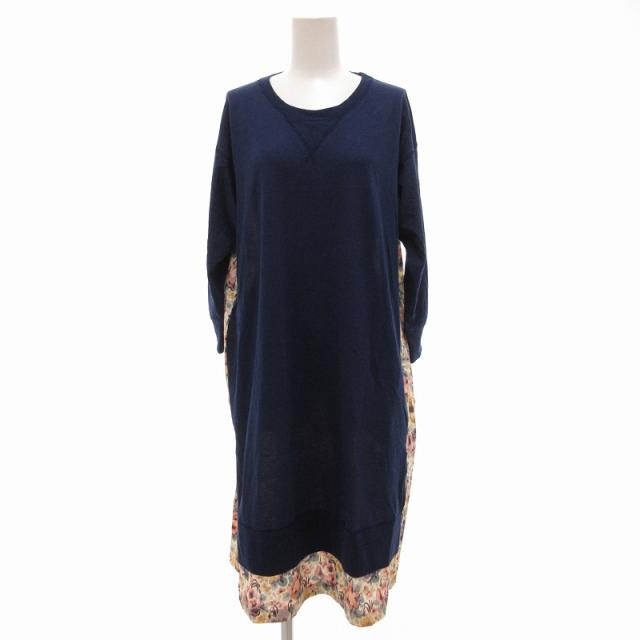 【中古】ジェーンマープル Jane Marple ワンピース 花柄切替 ひざ丈 M 紺 ネイビー ベージュ系 /UO ■GY45
