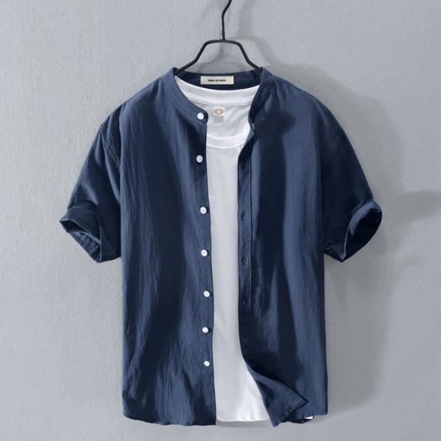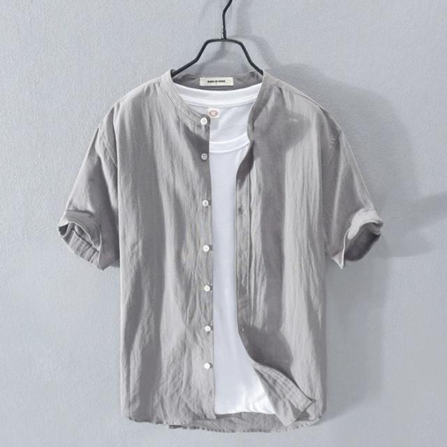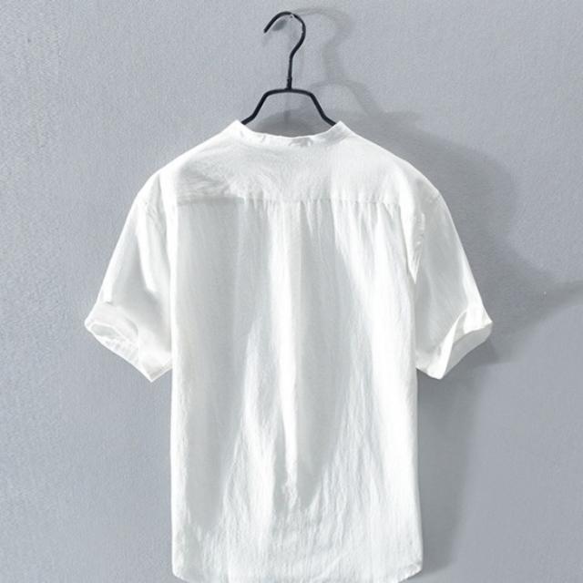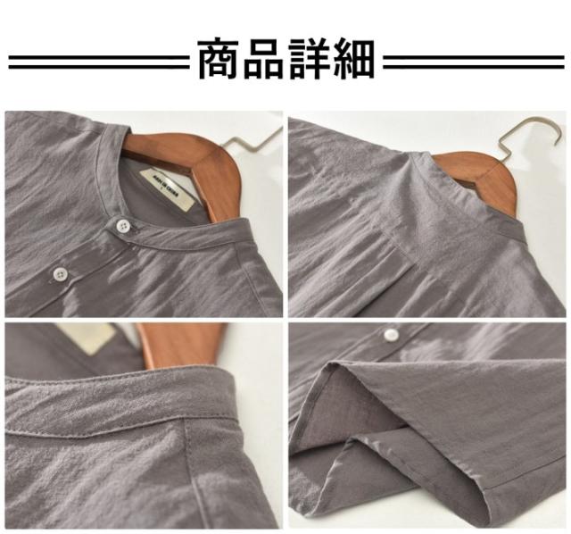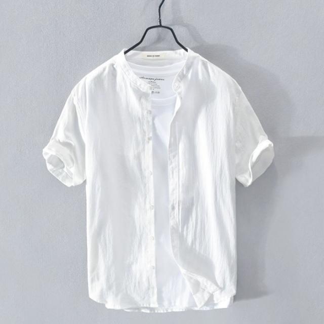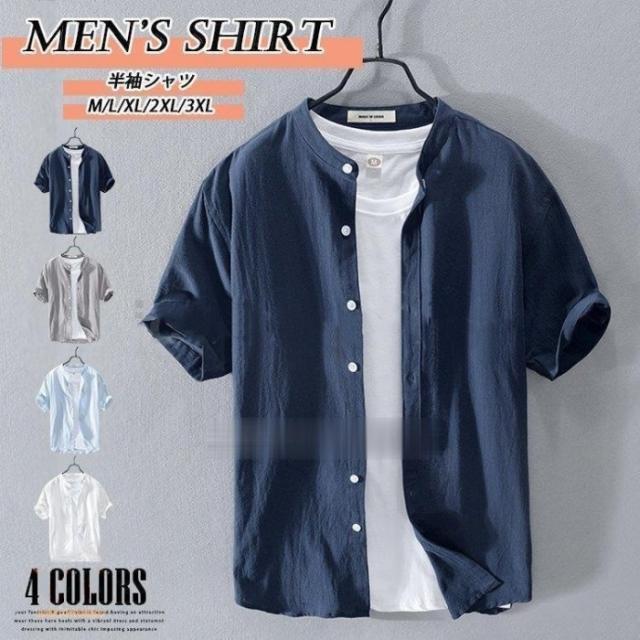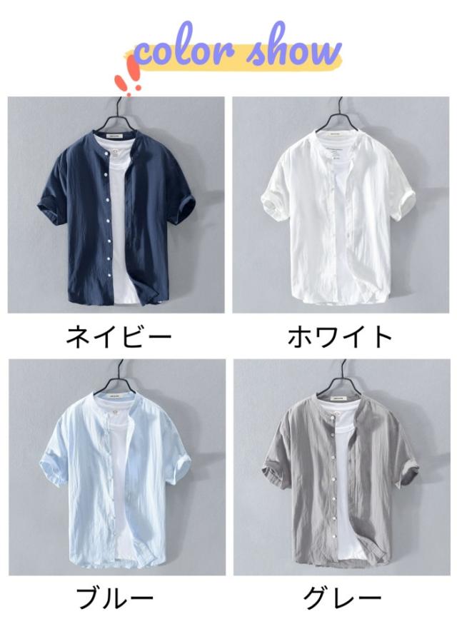 リネンシャツ メンズ 半袖 40代 50代ファッション 無地 スタンドカラー 綿麻シャツ 通気性 お洒落 通勤 夏服 トップス