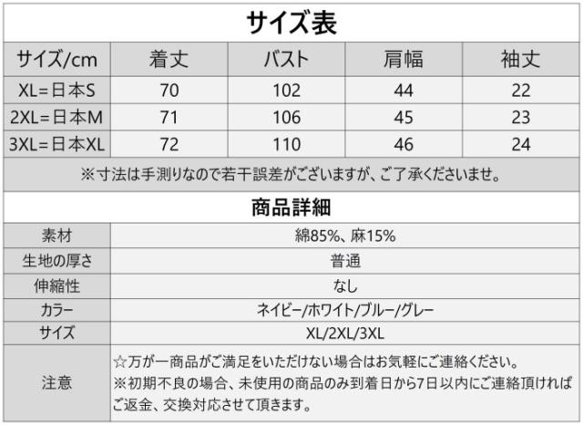 3XL:着丈72 バスト110 肩幅46 袖丈24