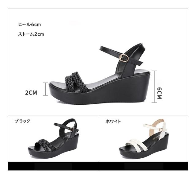 サンダル レディース 厚底 ウェッジソール 21.0-26.5cm 黒 白 コンフォートサンダル 大きいサイズ ヒールサンダル 小さいサイズ ヒール6 着心地よい おしゃれ 美脚 可愛い足元 靴 女性 大人 ブラックホワイト ja027m5m5ld