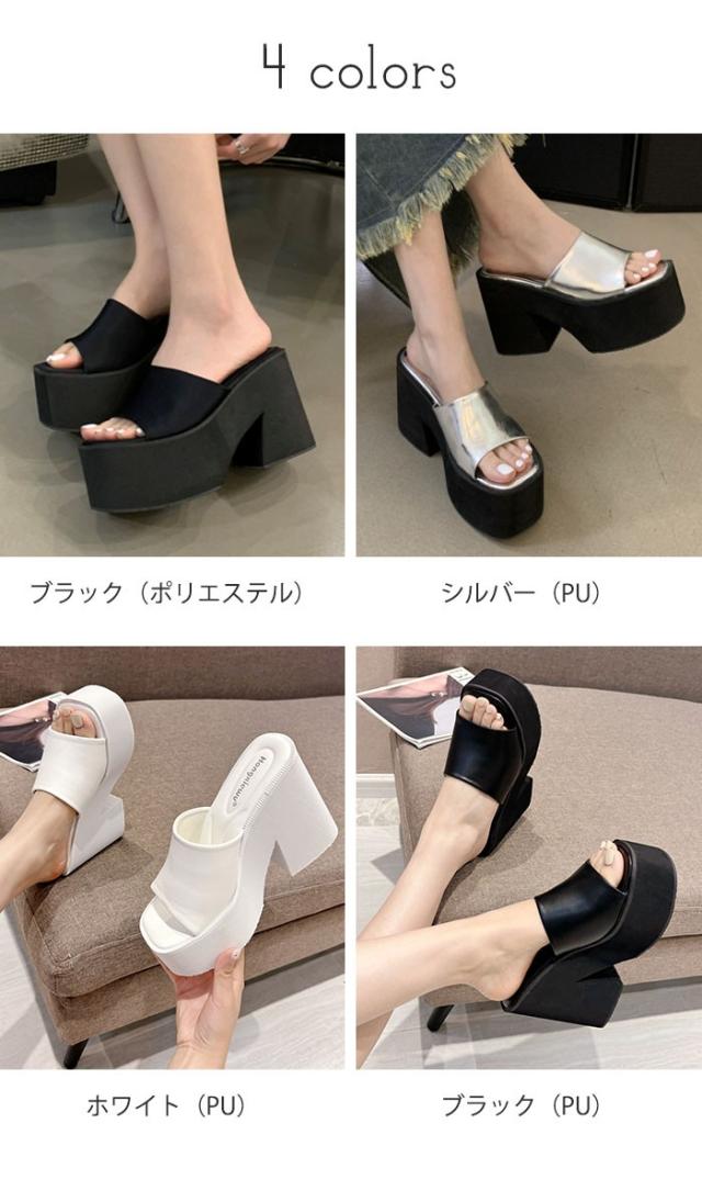 ミュール サンダル ヒール レディース ウエッジソール ウェッジソール オシャレ 小さいサイズ 厚底 11cm 厚底サンダル 黒 ブラック 白 ホワイト シルバー 銀 ストーム オープントゥ ヒールサンダル 22.0 22.5 23.0 23.5 24.0 24.5 春 夏 靴 女性 大人 つっかけ ハイヒール シューズ シンプル ba065n1n1ld