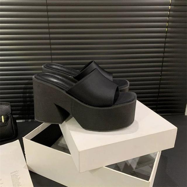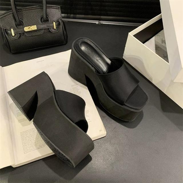 ミュール サンダル ヒール レディース ウエッジソール ウェッジソール オシャレ 小さいサイズ 厚底 11cm 厚底サンダル 黒 ブラック 白 ホワイト シルバー 銀 ストーム オープントゥ ヒールサンダル 22.0-24.5 春 夏 靴 女性 大人 つっかけ ハイヒール シューズ シンプル