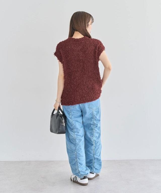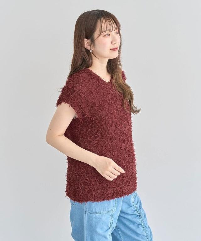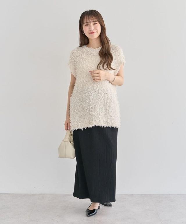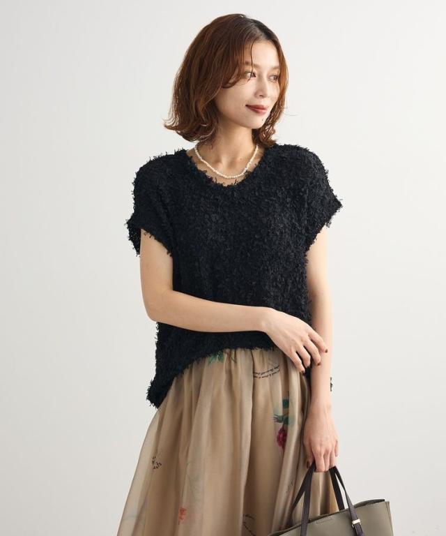 ふんわりと表情感のあるチュールヤーンで仕立てたニットプルオーバー。ゆったりとワイドなシルエットにフレンチスリーブと腰回りが隠れる丈感で自然な体型カバーを叶えます。ローゲージ編みの程よい透け感が暑さの残る季節にも軽やかに演出。一枚ではもちろん、合わせるアイテム次第でロングシーズン楽しめるおすすめのアイテムです。透け感[ややあり]