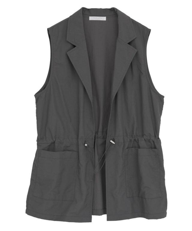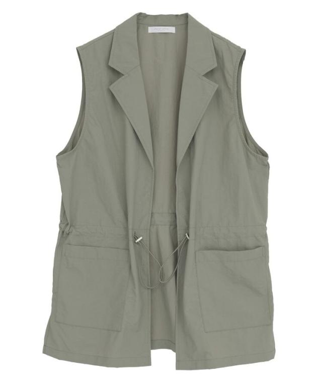 レイヤードコーディネートにおすすめしたいナイロンベスト。スポーティーな印象ながらも衿付きデザインでスタイリングにきちんと感をプラスします。ウエスト部分のドロストコードを絞ると女性らしいメリハリあるシルエットに。Tシャツ合わせはもちろん、夏はタンクトップやキャミワンピースに重ねたスタイルも楽しめる汎用性抜群のアイテムです。透け感[なし]