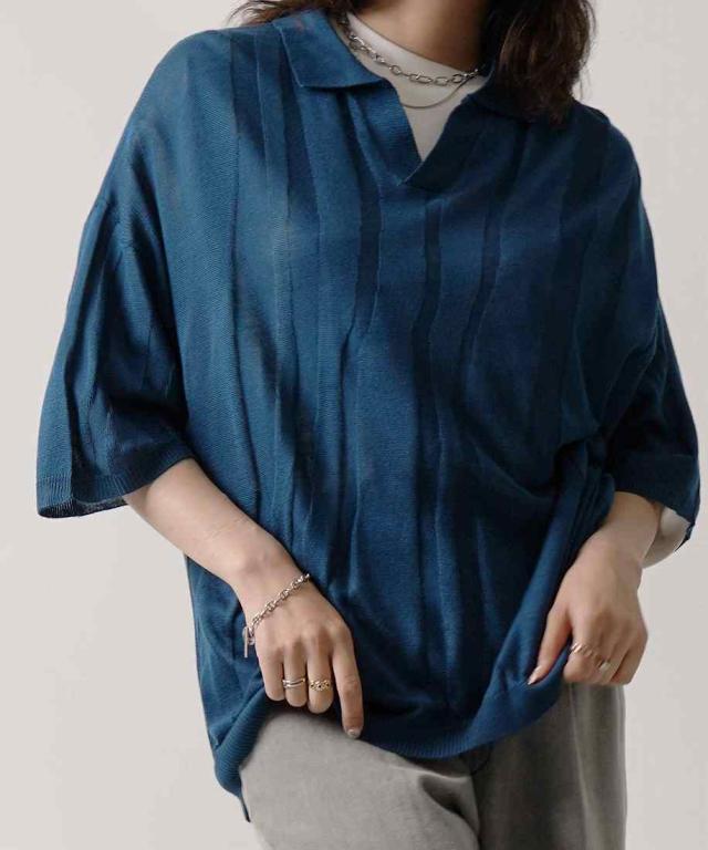 Confirm エンボス スキッパー ニットポロシャツ