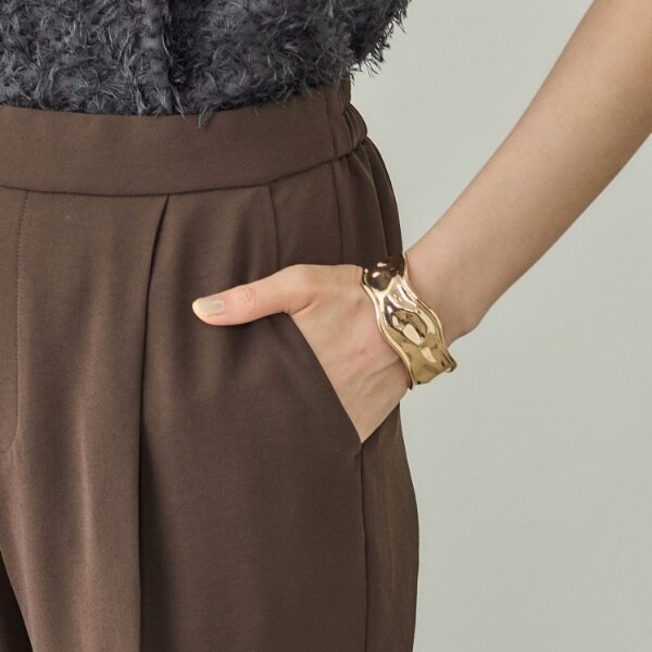 程よい落ち感の体に馴染む素材を使用し、リラックス感がありながらも、キレイ目な印象のスーツ定番のタックテーパードパンツです。