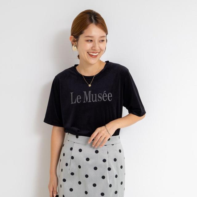 ・シアー感のあるベロア素材のロゴTシャツ