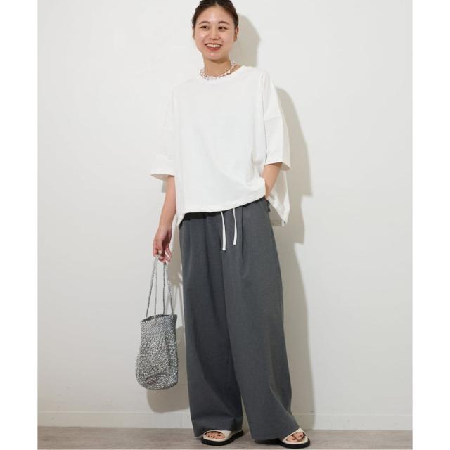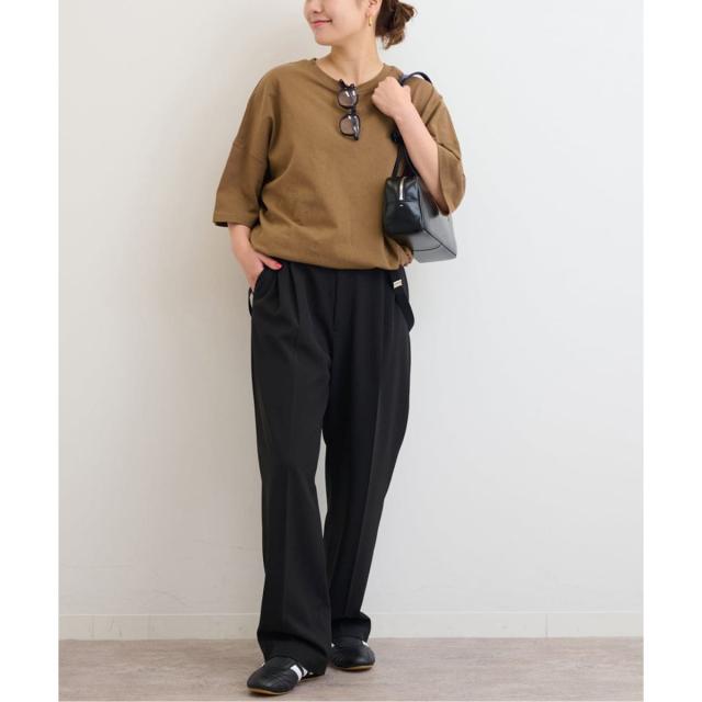 素材感:しっかり目のカットソー素材。さらっとした滑らかな質感ではなく、ドライでカジュアルな印象です。