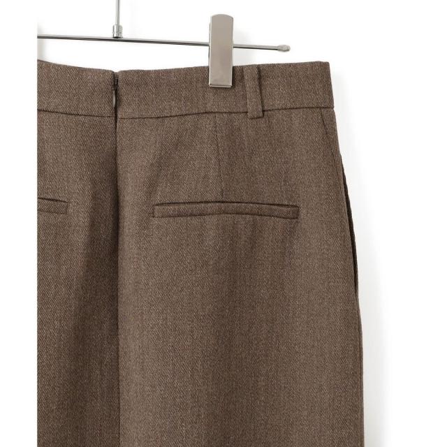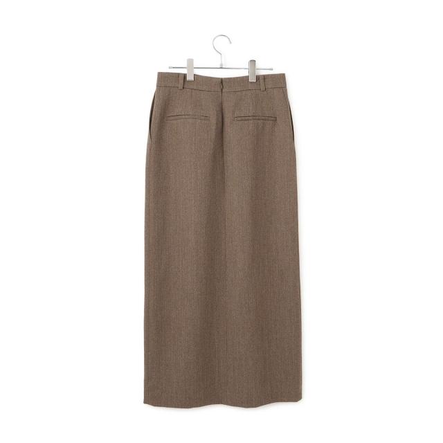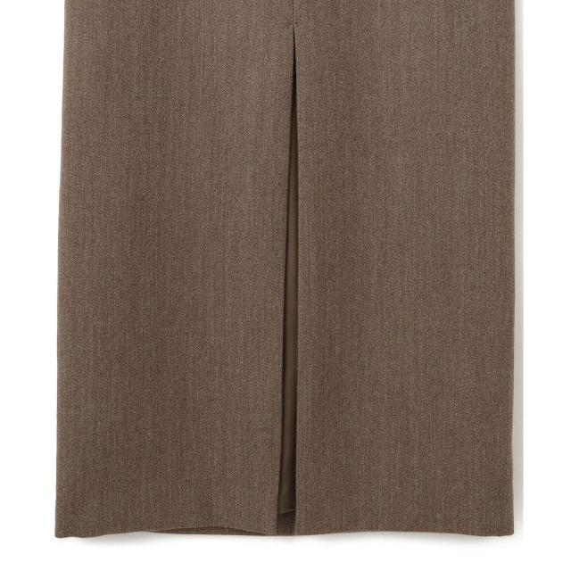 フロントのスリットは長めに設定し、モード感をプラス。ディティールをそぎ落としたシンプルさの中、歩いた時に見える足元が印象的な1着。