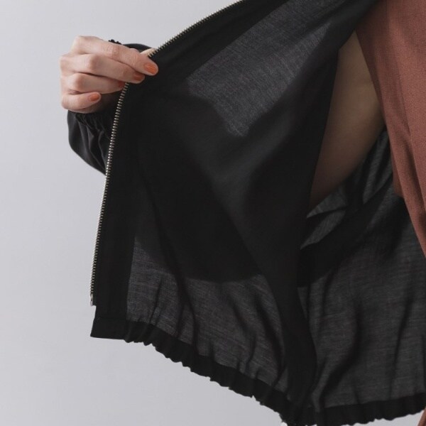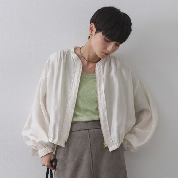 ・裾にドローコードを入れ、ギャザーたっぷりのフォルムに仕上げたシアーブルゾンです。
