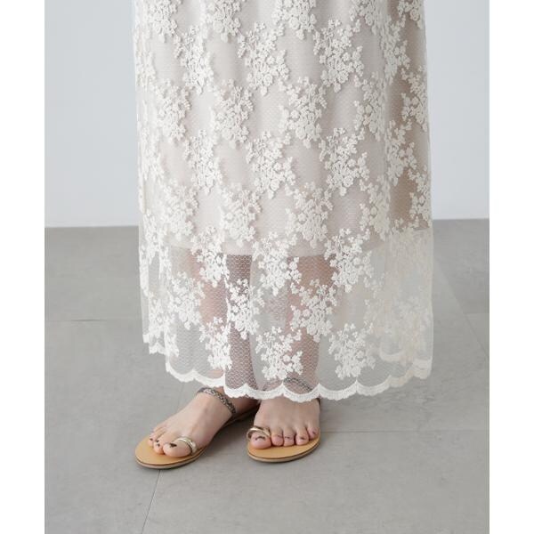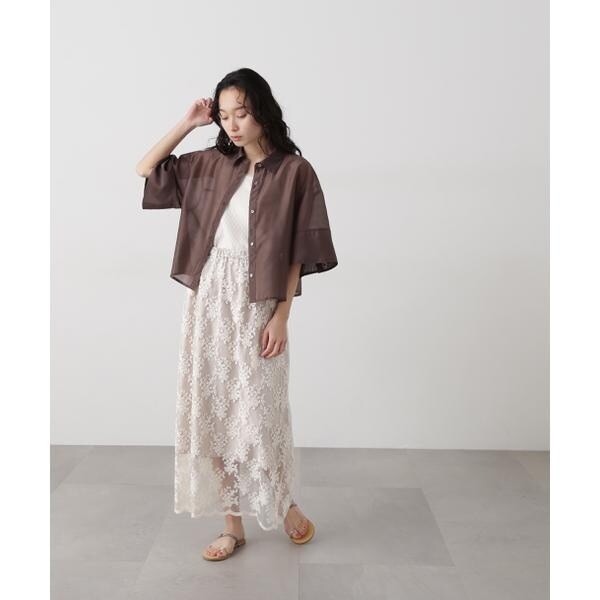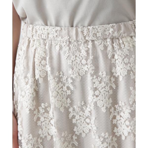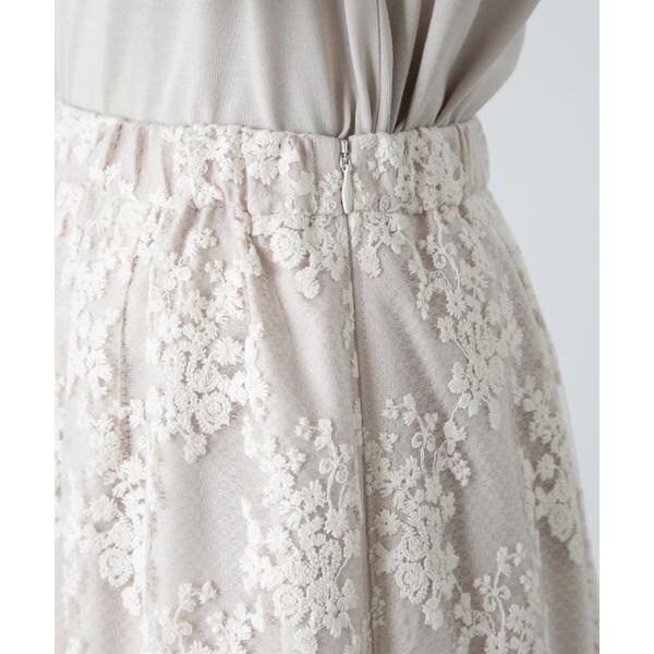 >>同型商品はこちら<< 女性らしさを引き立てる繊細なレース素材を使用したAラインスカート。甘くなりすぎないレースの配置や涼やかなディテールがこれからの季節に着映えるデザイン。裾に向かって緩やかに広がるAラインに、裾まわりのカッティングや軽やかな透け感が、足元に抜け感を演出します。シャツ、シアーニット、Tシャツ合わせもお勧めです。<素材>繊細でランジェリーライクなレースを使用しています。<詳細>仕様・左ファスナー裏地・あり透け感・あり / 光沢・なし / 伸縮性・ややあり生地の厚さ・薄手※モデルの着用画像の場合、光の当たり具合により、実際の色味と異なって見えることがございます。色味は、商品単体の画像をご参照ください。
