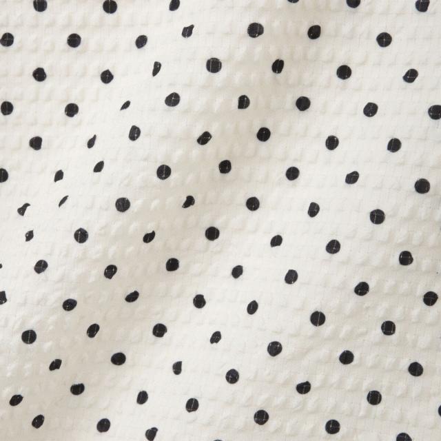 凹凸感のあるサッカー生地に、控えめなドット柄をのせた大人の夏スカート。
