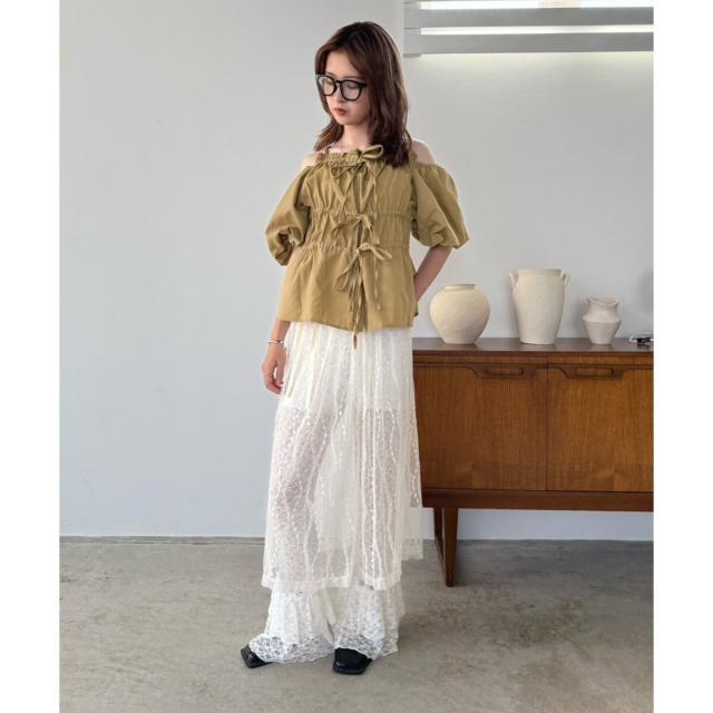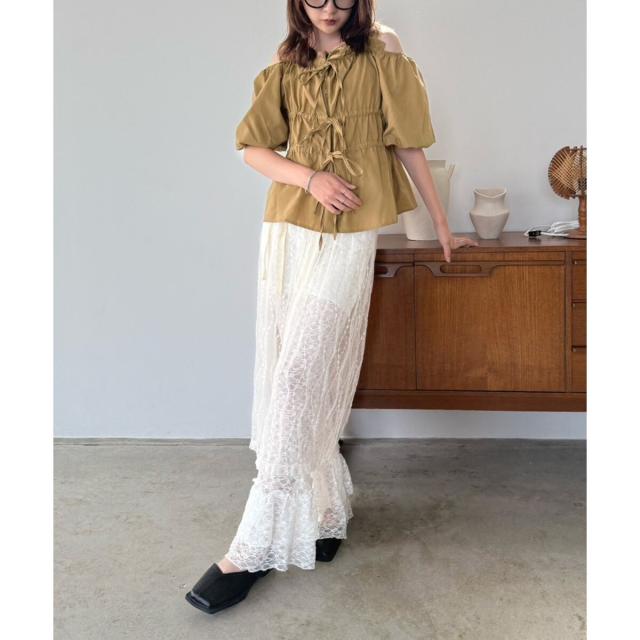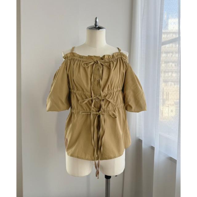 バルーンスリーブオフショルギャザートップス