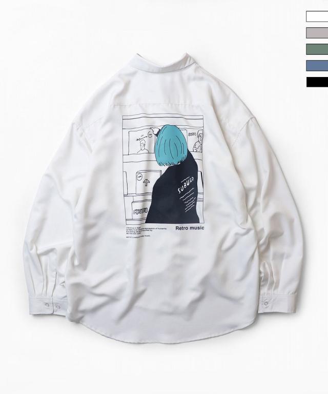 イルズ(ILLS)/ILL’S ビッグシルエット レコードガール イラストバックプリントシャツ 長袖