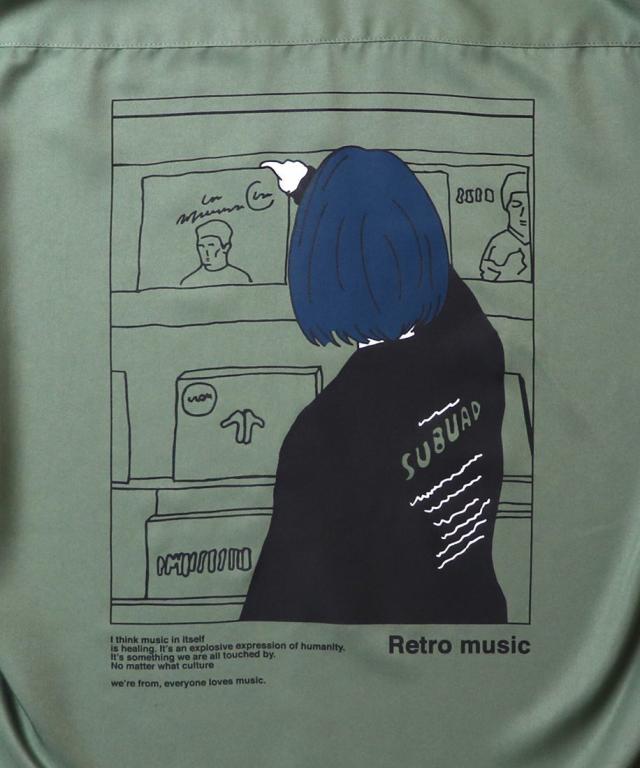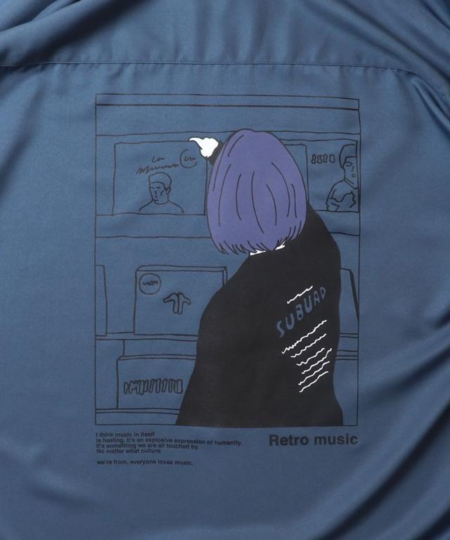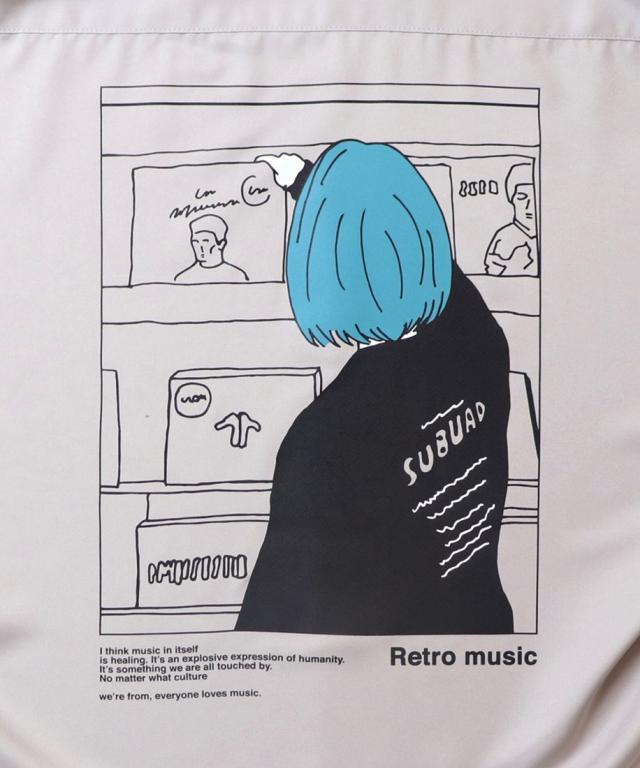 ILL’S ビッグシルエット レコードガール イラストバックプリントシャツ 長袖