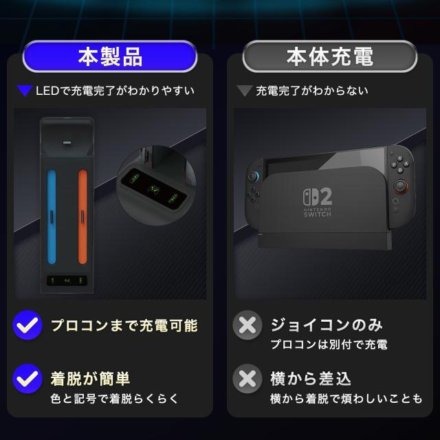 Switch2 充電 Switch2 充電スタンド ジョイコン 充電 スタンド アクセサリー 周辺機器 ケーブル付 Type-C Switch2 ジョイコン 充電 switch 充電 スタンド Joy-Con 充電器 コントローラー 任天堂 switch2 保護 機能 充電 同時充電 ジョイコン 収納 ブラック