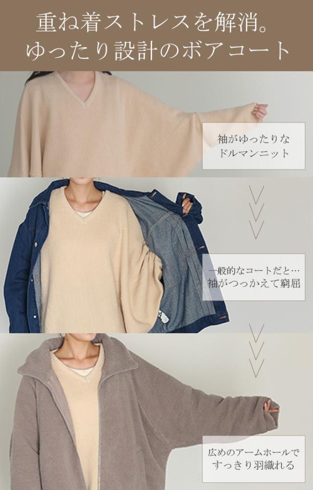 着るだけで雰囲気のあるスタイリングになるドルマンボアアウターです。