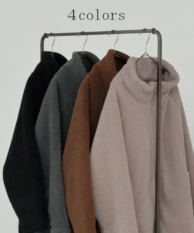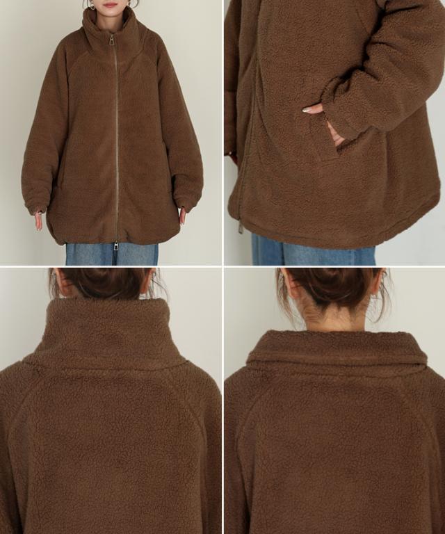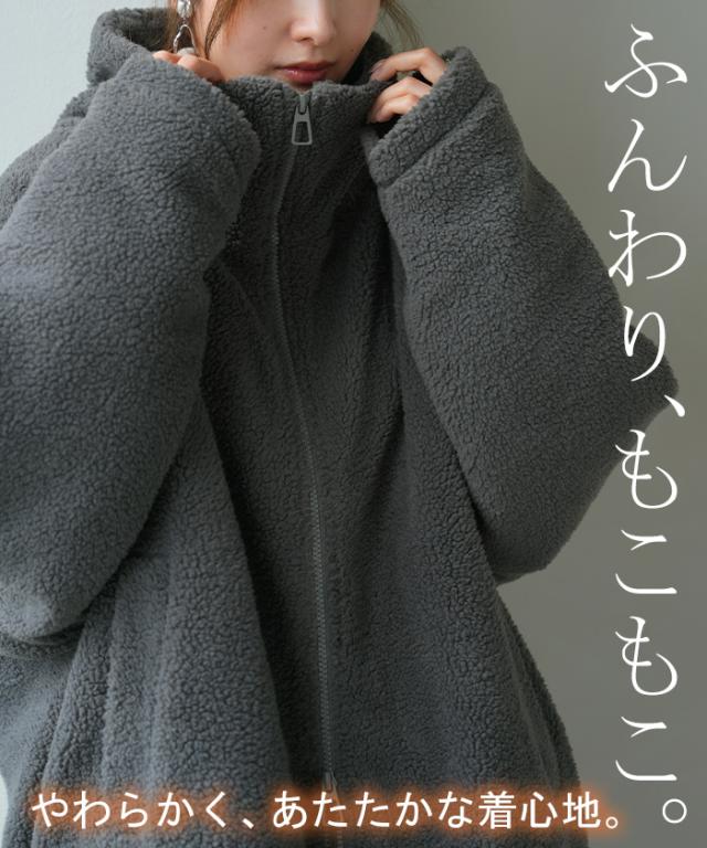 もこもことしたボリュームが可愛らしくスタンドカラーで首元まであったかな着心地もポイントです。