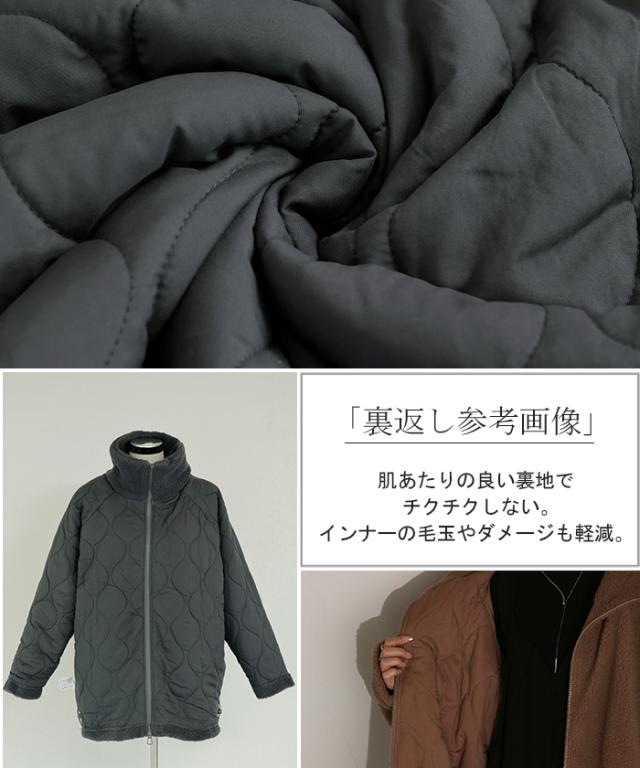 2025AW新作 コート ボア 中綿 ドルマンスリーブ アウター レディース ボアアウター 中綿アウター 中綿コートドルマン ドロスト 長袖 オーバーサイズ 裏地 大きいサイズ 重ね着 体型カバー 二の腕カバー カジュアル 防寒 グレー ブラック 秋 冬 HUG.U 秋新作