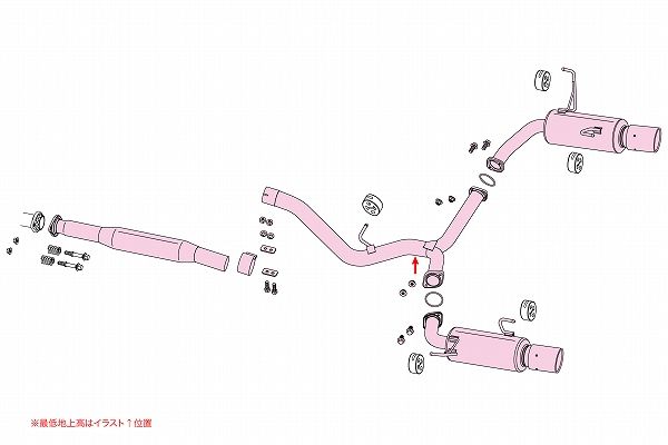 ※熱害防止の為、デフ横(ドライブシャフト近傍)、及びスタビライザー(ブッシュ部)を通る中間パイプに断熱マットを巻いて下さい