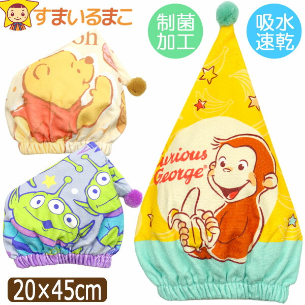タオル キャップ 男の子 キャラクター プール キャップタオル マイクロファイバー 制菌加工 吸水速乾 おさるのジョージ プーさん リトルグリーンメン トイストーリー k1306 ネコポス便は送料無料 子供 こども キッズ ジュニア タオル ヘアキャップ お風呂上がり 水泳