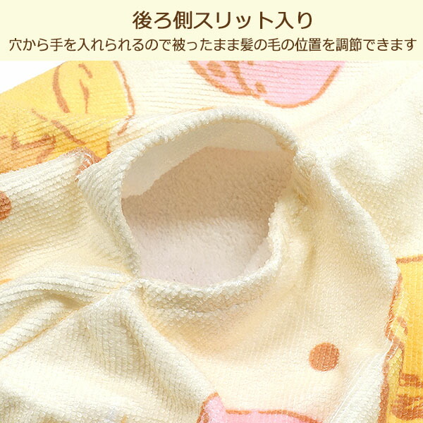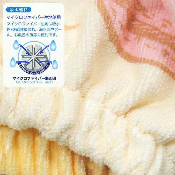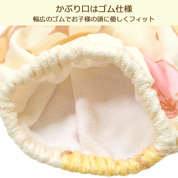 | 商品説明 | ※可愛らしいキャラクターがプリントされた濡れた髪をすっぽり包み水分を素早く吸収!プールやお風呂のあとに便利なキャップタオル♪ ※制菌加工が施された、吸水性・速乾性に優れたマイクロファイバー生地使用! ※後ろ側の途中に開いているスリットで髪の位置を調節できます。 ※頭周りはゴム入りなのでズレにくい! |
