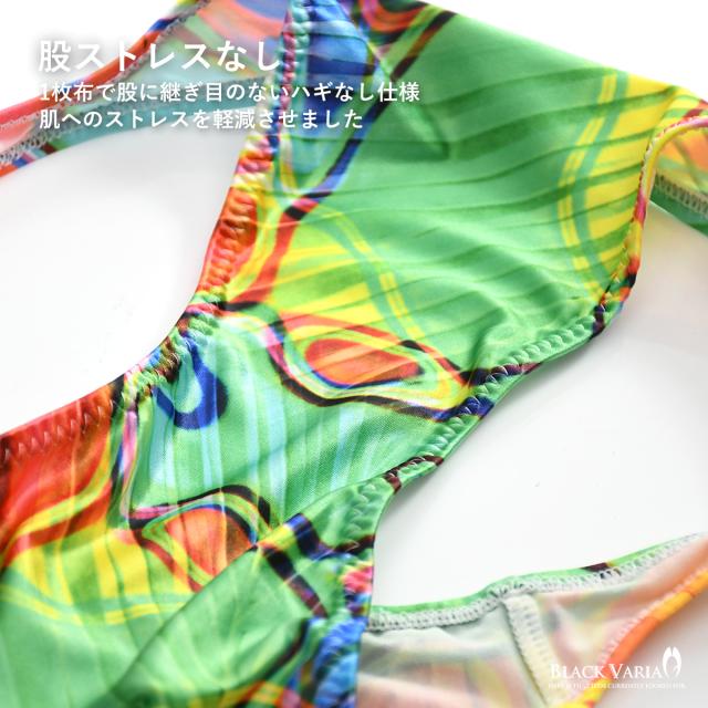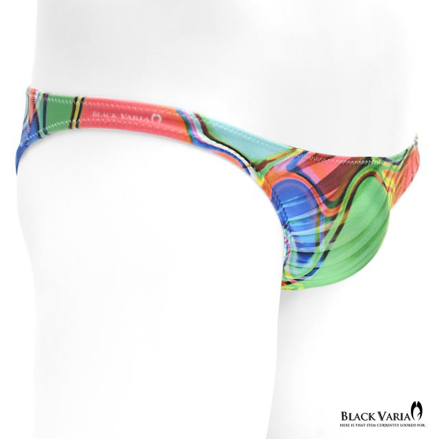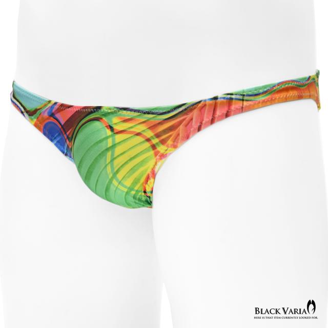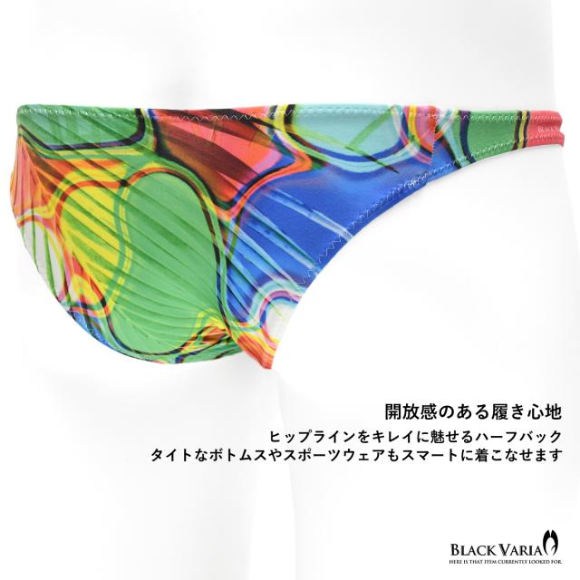 ハーフバック モダン柄 アート柄 模様 ヤシ 幾何学柄 下着 ビキニ ショーツ パンツ メンズ(レインボー) tc044